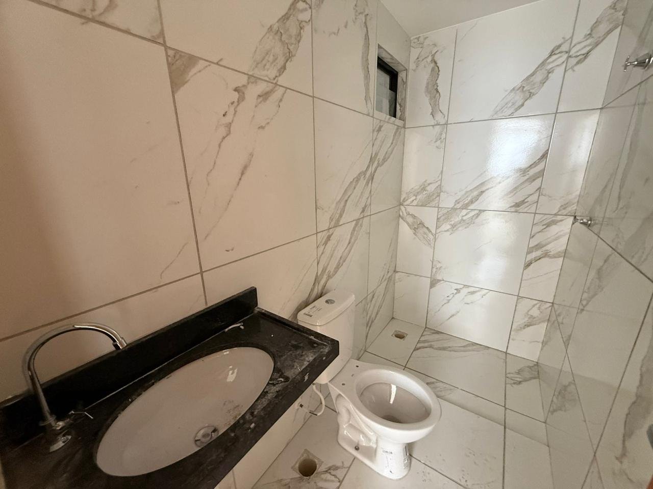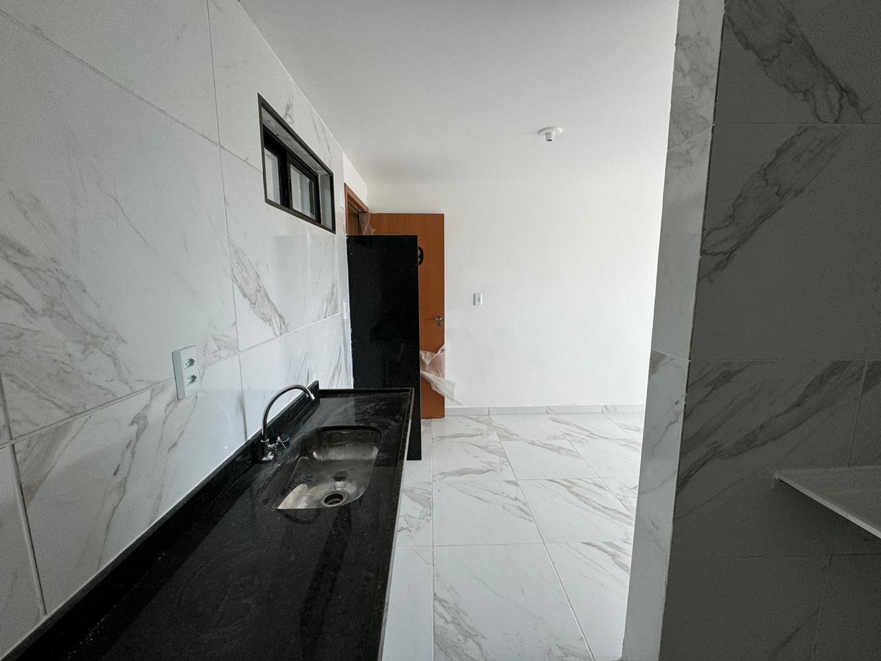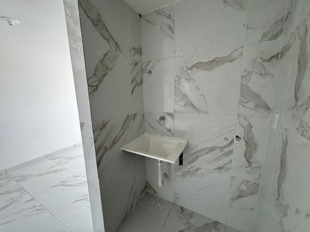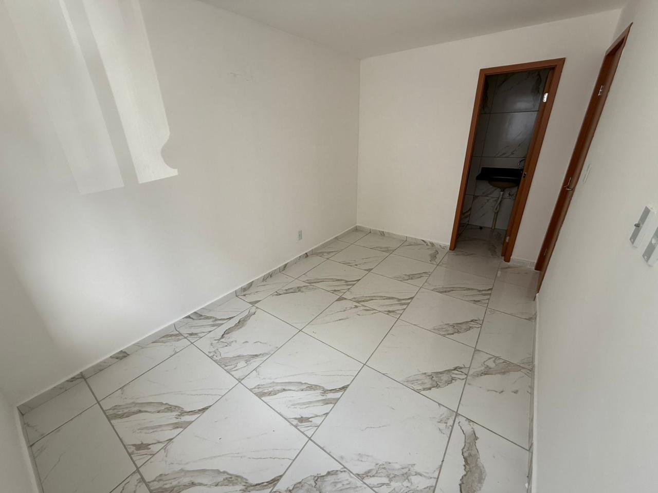 A configuração típica: 2 dormitórios (sendo 1 suíte), sala, banheiro social, cozinha com área de serviço, e 1 vaga de garagem descoberta.